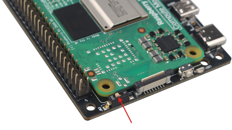 Toggle the Boot switch to the ON position to enter flashing mode.