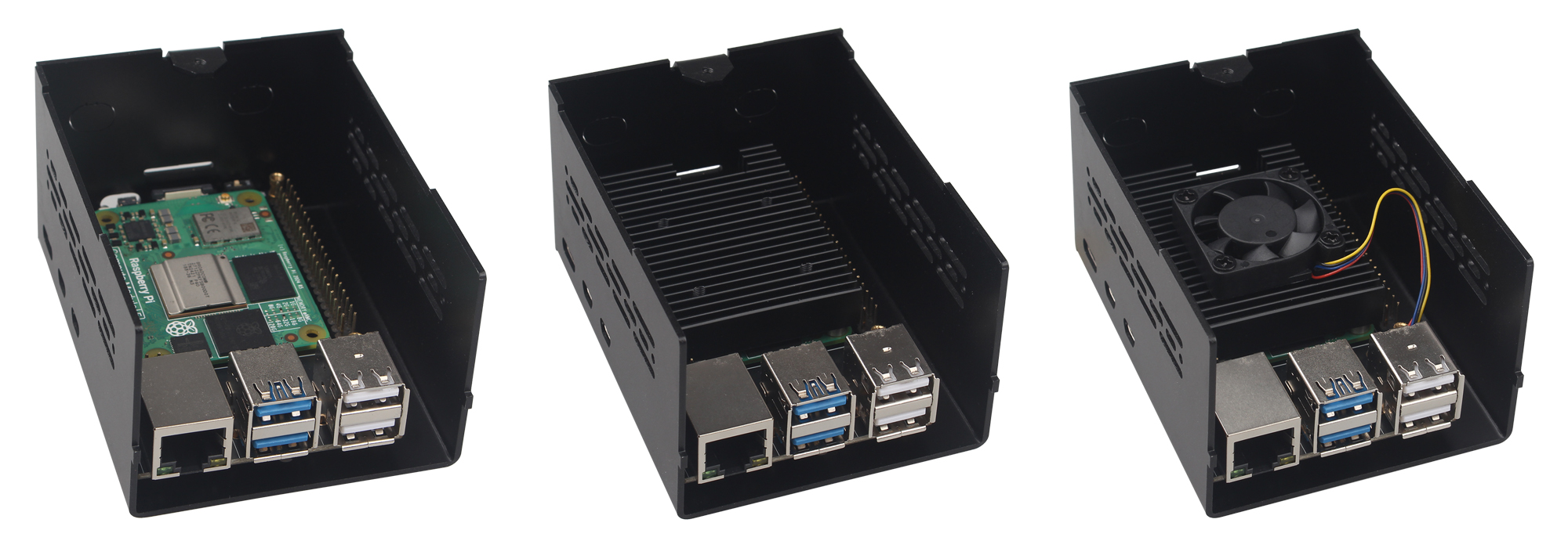 Both of the ZP560 options plug into the four-pin JST-SH PWM fan connector located in the upper right of the board between the 40-pin GPIO header and the USB 2 ports. The fan connector pulls from the same current limit as USB peripherals. We recommend the Active Cooler case for overclockers, since it provides better cooling performance.