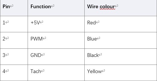 The ZP560 fan connector is a 1mm pitch JST-SH socket containing the following four pins: